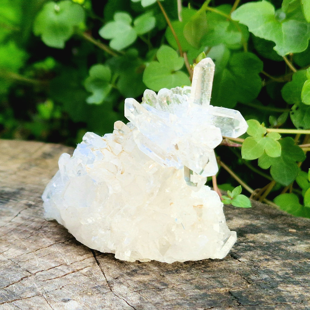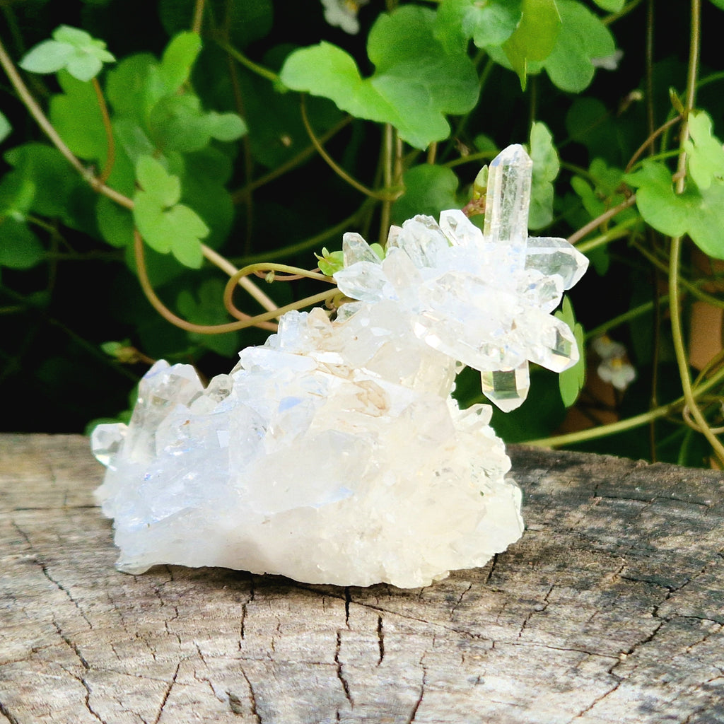 Naturliga kluster av bergkristall (klar kvarts, eng. Clear Quartz).